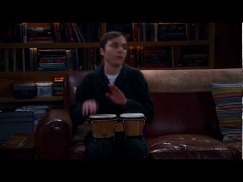 Sheldon playing bongos